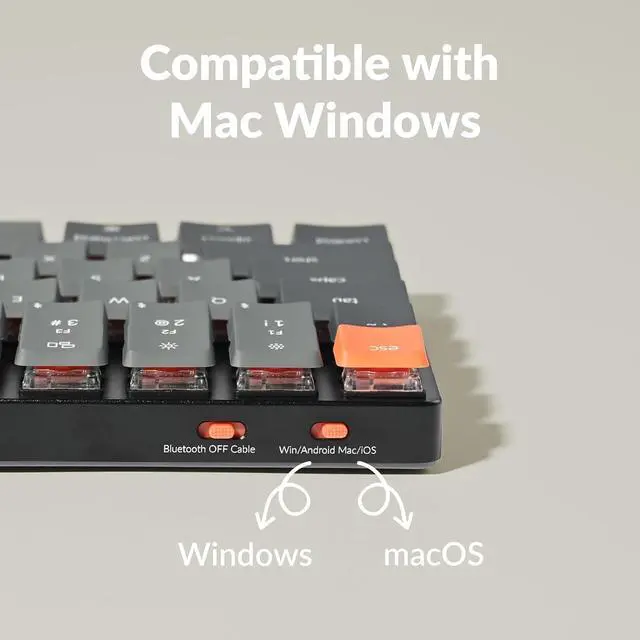 With a unique Mac layout, the K3 has all the necessary Mac multimedia keys while still being compatible with Windows. Extra keycaps for both Windows and Mac operating systems are included. *If it doesn' t match your device exactly, you can try updating the keyboard' s firmware.