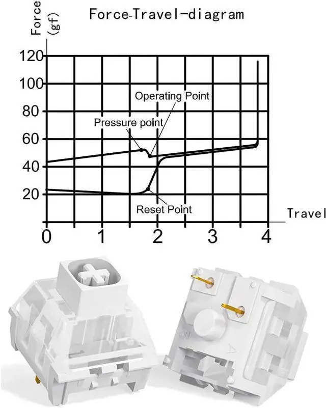 1. Crisp Tactile Bump & Distinctive Click Sound Satisfying Clicky Feedback: Patented Box stem design delivers a sharper, more resonant click than MX Blue, with no spring ping. 45gf