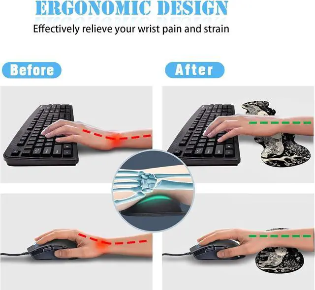 Ergonomic Mouse Pad: Designed with memory foam and soft, Smooth material, The pads are lightweight and comfortable for your daily work life. This gaming mouse pad with wrist support is ergonomically shaped to minimize wrist stress and fatigue. The soft wrist rest keeps hands level with keyboard and mouse, Improves hand and wrist posture, Avoids joint and wrist problems, and relieves pressure on elbows and shoulders.