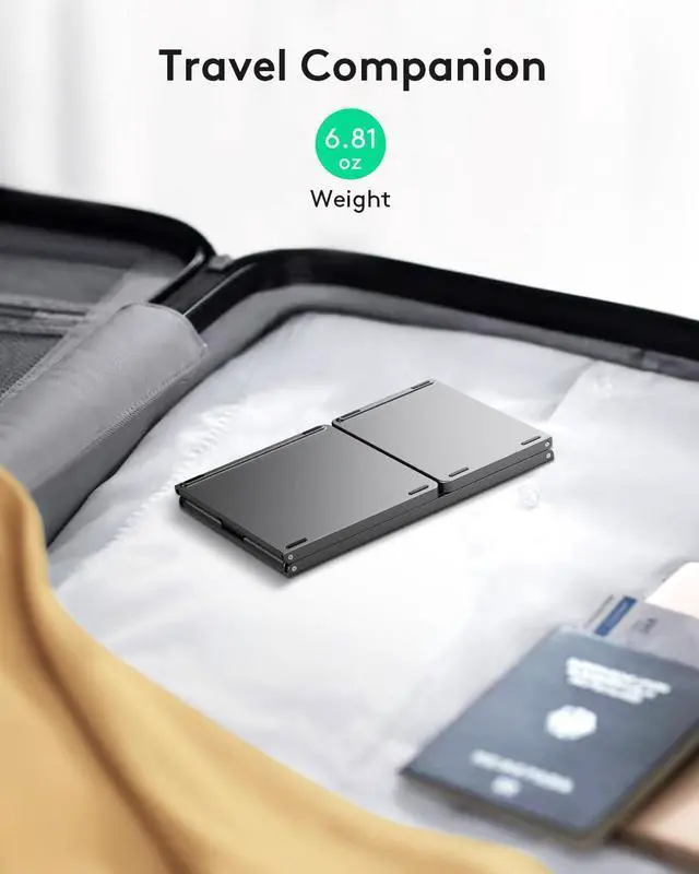Exquisite & Lightweight Portable KeyboardDark gray matte exterior, made of ABS+PC material, lightweight but stable, without fear of daily wear and scratches. The elegant matte design, excellent touch and clean look make it a perfect match for your tablet, phone and laptop. Only 5.53 -ounce, palm-sized keyboard can be folded up and carried around. Provide you with maximum convenience with minimal weight and size. It must be the good choice for editors!