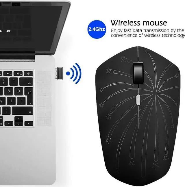 2. Wireless( 2.4G hz) mouse, connected by Nano USB receiver, working for PC, Notebook, Laptop, Macbook and other devices etc.