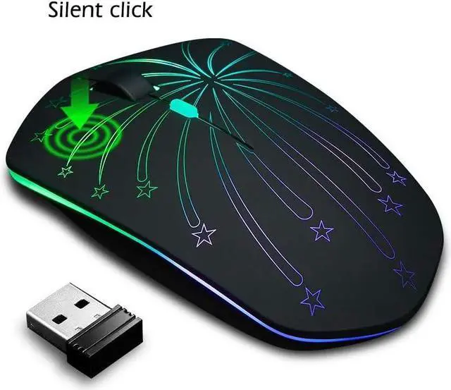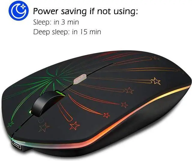 1. Rechargeable wireless mouse with illuminating powered by internalized rechargeable battery, and illuminating effect will be up to your preference controlled by button at the bottom.