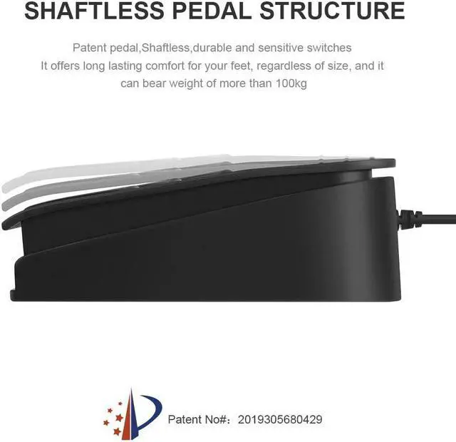 This foot pedal is build with durable, sensitive switches providing you with an easy touch response and minimal resistance. The ergonomic design with a wide pedal and the large size enables you long lasting comfort for your feet, and it can bear weight of more than 100kg.