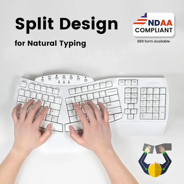 Ergonomic Split-Key Design - Integrated palm rest supports your wrists, releases median nerve pressure and reduces forearm tension; Natural arm and hand position while typing minimize chances of RSI, carpal tunnel syndrome