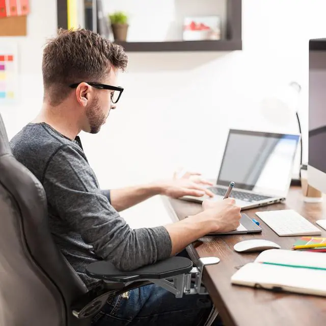 Dynamic 180° Full-Motion Support: Designed for the fluid movements of modern work. This armrest is capable of smooth, horizontal rotation that follows your arm from keyboard to mouse without resistance. It satisfies your want for total freedom of movement in a slim, lightweight profile that never feels bulky.