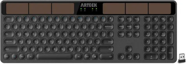 Package Content: Arteck Solar 2.4G Wireless Keyboard, nano receiver, welcome guide, our 24-months warranty and friendly customer service.