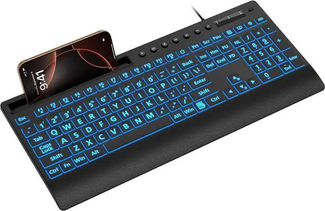 DEVICE HOLDER FOR MULTITASKING: The full-size keyboard is designed with a phone and tablet holder. Accommodates phones and tablets under 11.5 inches, making it convenient to type and check information at the same time without missing any important content.