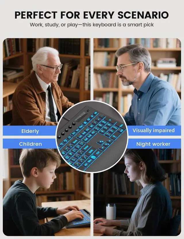 LARGE PRINT KEYBOARD: 3X larger than standard keyboard fonts, clear and easy to identify, effectively helping users with visual difficulties. Perfect for the elderly, visually impaired, students, office workers, schools, special needs departments and libraries, etc.