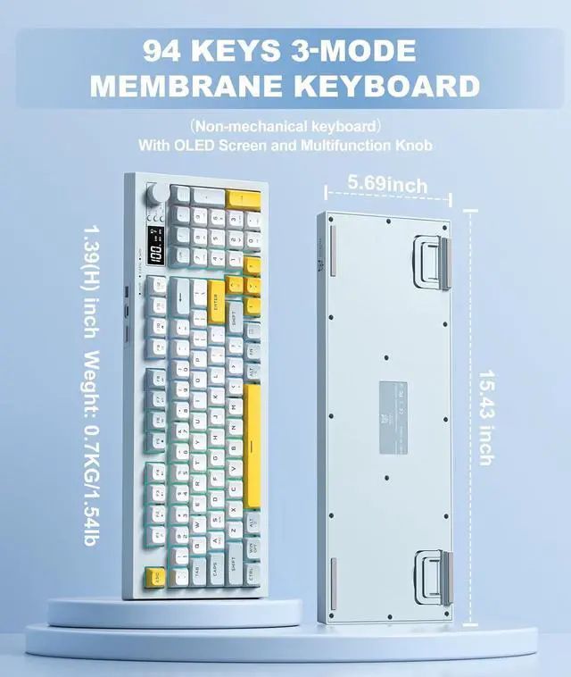 Enhanced Membrane Typing ExperienceExperience mechanical-like satisfaction with this optimized 94-key wireless keyboard. Featuring responsive padding technology, reduced actuation force, and shorter key travel, it delivers precise tactile feedback in a near-silent profile perfect for gaming and office use.