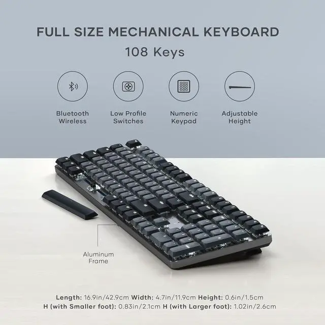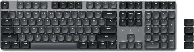 108 Keys Low Profile Keyboard The Satechi full size mechanical keyboard features low-profile brown switches, providing unmatched tactile feedback and faster actuation, and removable keycaps that make it easy to clean and customize your keyboard. Designed to strike the perfect balance between typing and gaming, the keyboards quieter operation is ideal for office environments or shared spaces