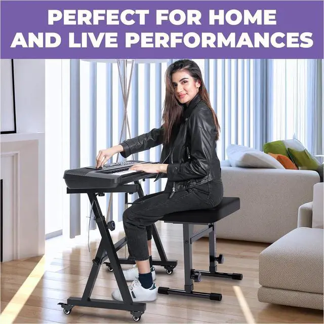 Play while seated or standing: What makes the Z style electric piano stand so versatile is its ability to adjust to both the musician' s height and the piano' s width. With this stand, users will have the option to make music while standing or while sitting on a bench, seat, or stool.