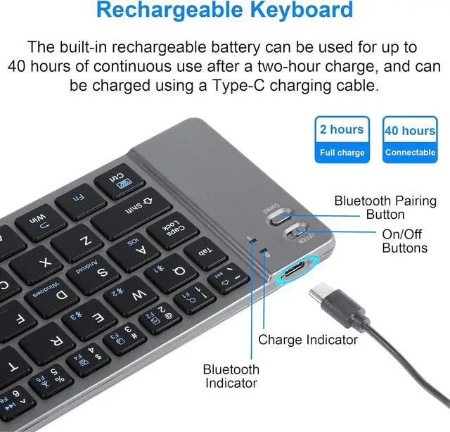 Portable & Foldable Design: Our foldable Bluetooth keyboard is designed for ultimate portability. Its foldable feature allows wireless bluetooth keyboard to easily fit into your bag or pocket, making foldable wireless keyboard perfect for on-the-go use. Whether you are in a coffee shop, airport, or office, its compact and foldable design allows you to create a portable workstation anywhere