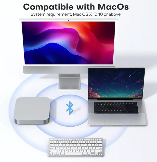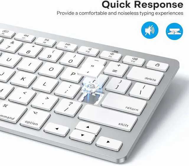 Bluetooth Keyboard for Mac: Boasts a stable Bluetooth connection range of up to 33 feet (10 meters), allowing effortless pairing in just seconds. No additional USB drivers or cables required.