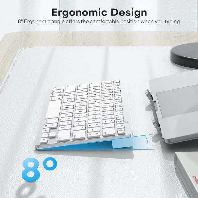 Ergonomic & Stable Typing: This wireless keyboard ( 11.2 x 4.7 inch)offers a comfortable 8°tilt angle position. Four bottom rubber pads ensure firm grip and comfortable all-day use.