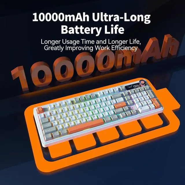 Tri-Mode Connectivity Machanical KeyboardThe rechargeable Bluetooth mechanical keyboard has a built-in high-capacity battery and low-power module, providing ample power for vacations and business trips; Bluetooth 5.0, wireless 2.4G and type-c wired modes are the most popular modes to connect to three types of devices, providing you with a wider choice of devices, perfect for desktop computers, smartphones, tablets and laptops. Unlimited keyboard connectivity for work, play and study