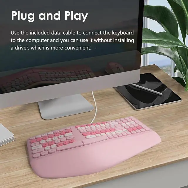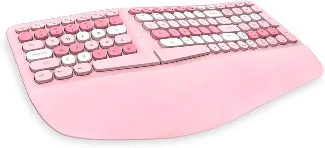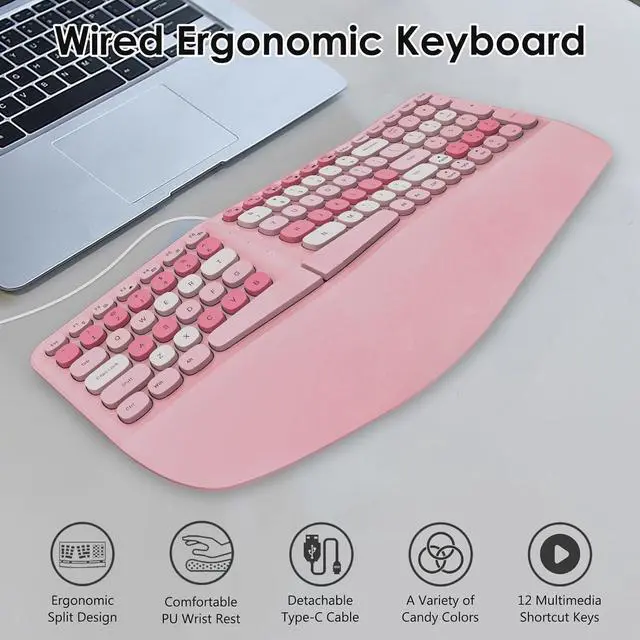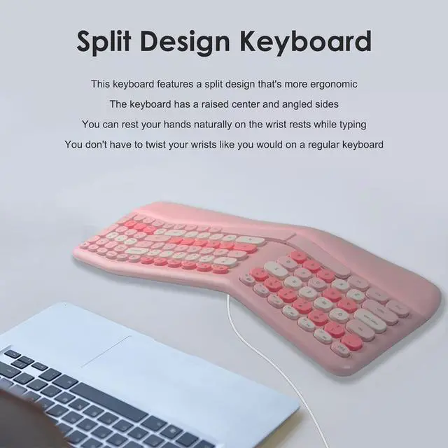 [Ergonomic Keyboard] The split tilted keyboard design fits your arms and hands. A light tap activates the bass keys, reducing typing stress. The integrated wrist rest supports your wrists and puts them in a comfortable position. This carpal tunnel keyboard allows you to type in a more natural posture, reducing muscle strain in your wrists and forearms.
