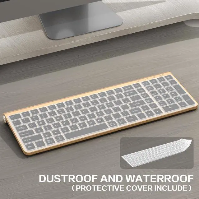 Long Battery Life: This gold wireless keyboard is equipped with an intelligent automatic sleep mode to effectively save power. When it remains unused for a period, the keyboard will automatically enter a low-power sleep state, greatly extending battery life. To wake it up, simply tap any key to quickly resume operation.