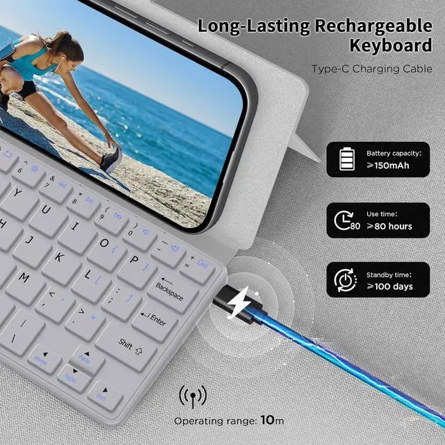 Multi-system compatibilityThis folding keyboard is widely compatible with iOS, Android and Windows operating systems, suitable for iPhone, Samsung, laptops, desktop computers and more devices. Please refer to the product description for specific connection methods