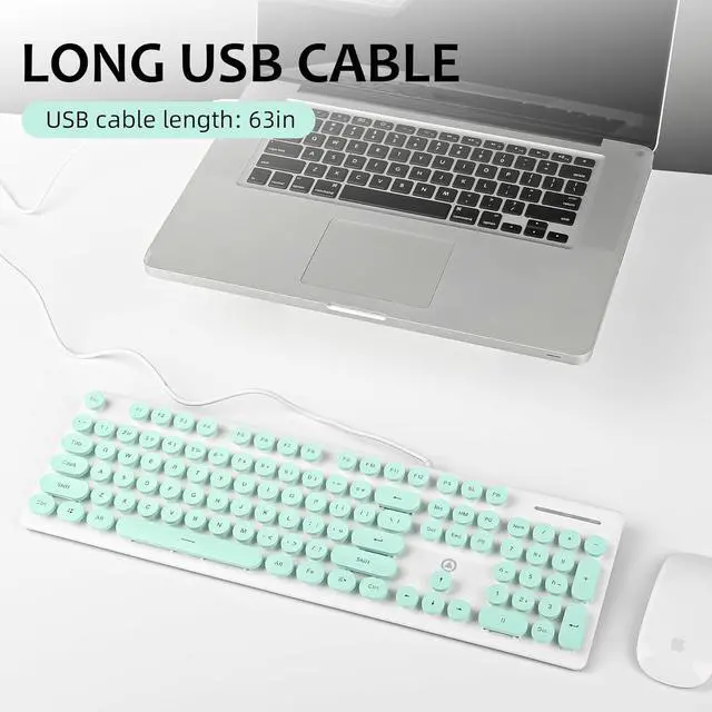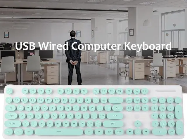Grooved ABS Keycaps material The keyboard cap is made of ABS environment-friendly plastic, which is table structure, non-toxic and odorless. Light matte surface treatment technology, care for your fingertips. Typewriter keyboards are handy and fun to work with in the office.