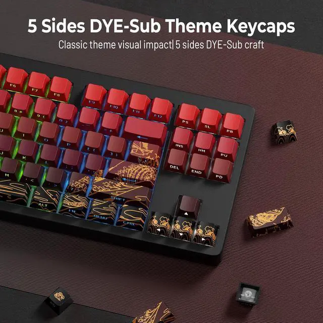 Durable Dye Sub PBT Keycaps Made of textured, high-grade 5-sided dye-sub PBT for a more durable finish less prone to long-term, shiny grime buildup, these keycaps provide top-notch durability and comfortable experience of typing to you.