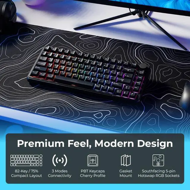 HOT-SWAPPABLE 5-PIN PCB WITH SOUTH-FACING RGB: Customize your typing experience easily with 5-pin hot-swap sockets supporting most mechanical switches. South-facing RGB LEDs provide vibrant per-key lighting while ensuring compatibility with custom keycaps.