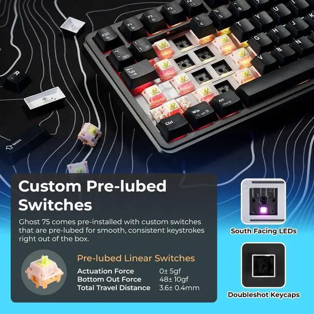 GASKET-MOUNTED DESIGN FOR SMOOTH TYPING: Experience a soft and refined typing feel with TECWARE Ghost 75s gasket-mounted structure and multi-layer sound dampening. Reduced vibration and controlled acoustics deliver a smooth, creamy keystroke feel ideal for long gaming and typing sessions.