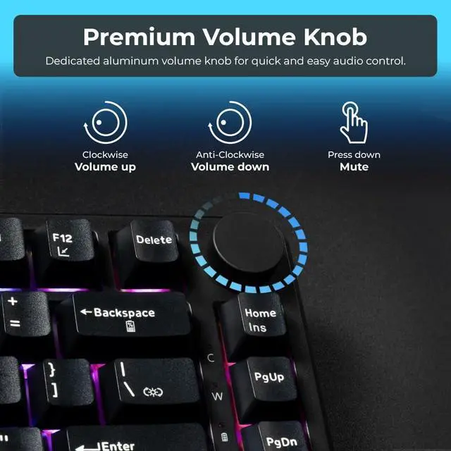 PREMIUM PBT KEYCAPS AND VOLUME KNOB CONTROL: Durable double-shot PBT keycaps resist shine and wear while maintaining a clean texture. A dedicated aluminum volume knob allows quick volume adjustment and mute control for efficient on-the-fly audio management.