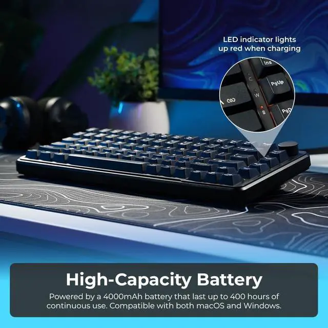 THREE MODES OF CONNECTIVITY FOR FLEXIBLE SETUPS: Seamlessly switch between Bluetooth, 2.4GH z wireless, and USB-C wired mode for low-latency and stable performance. Designed for effortless transitions between gaming, work, and multi-device setups on Windows and macOS.