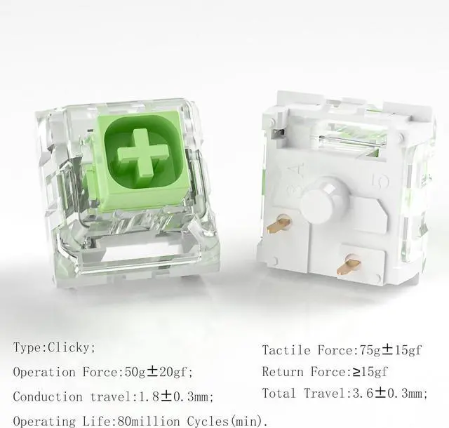 Kailh Box Jade Switches, Nice clicky and smooth action, Made by high quality material, Service life Up to 80 million cycles