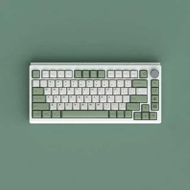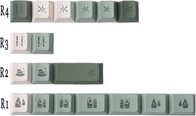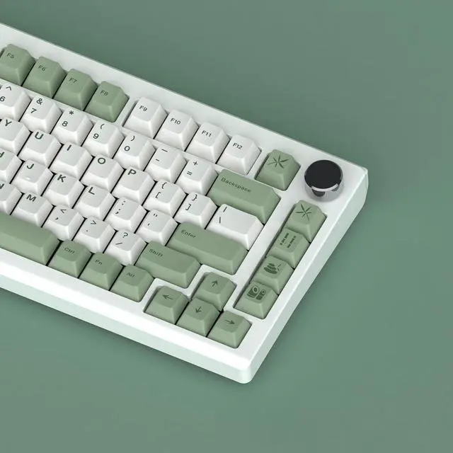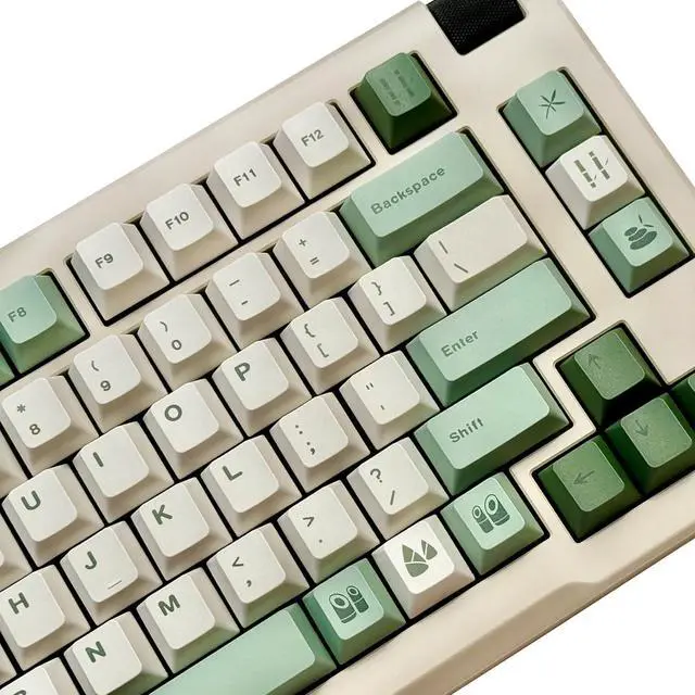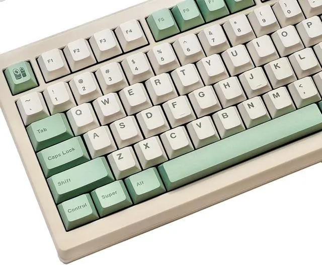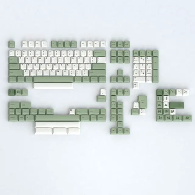 White Green Keycaps: Just keycaps. 160 keys for mechanical gaming keyboards, thickness is about 1.45 mm, the keycap design is based on bamboo theme, comes with almost every size keycap you might need.