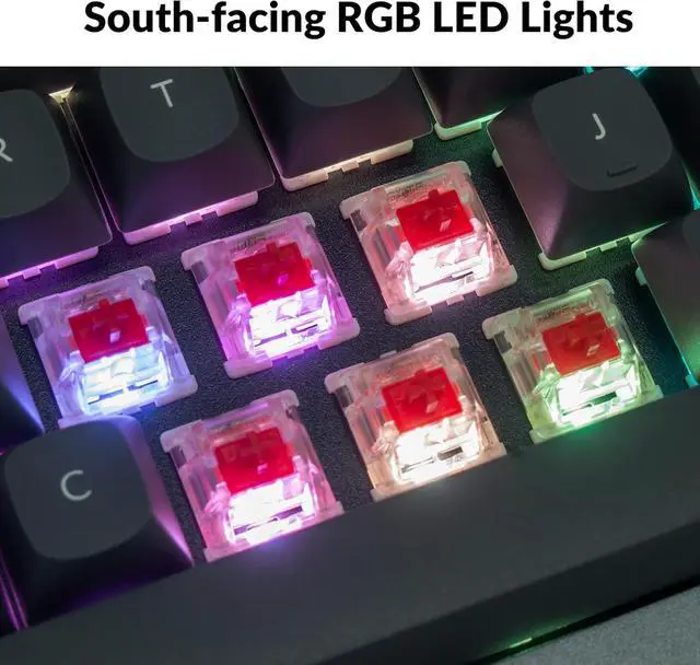 South-Facing RGB & PBT Keycaps: Featuring south-facing RGB LEDs for even backlighting and durable double-shot PBT keycaps that resist shine and wear. The large stabilizer keys have been optimized to prevent rattling and ensure stability,, while remaining compatible with third-party stabilizers for customization.