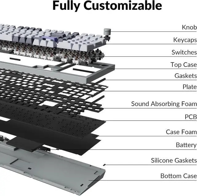 Fully Customizable - Comes with a solid fully metal body, screw-in stabs, flexible PC plate and double-gasket, we designed every component to be able to assemble easily so you can customize and modify each component with ease to create your ultimate typing experience.