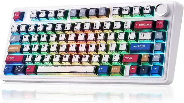 Dynamic Rgb Backlit Keyboard: F75 light up led keyboard features 16.8 million RGB lighting colors and 16 lighting effects, you can change the color, brightness and speed by the knob or FN key combination, creating a desktop atmosphere to fit your mood