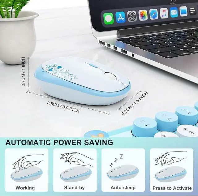 Wireless Keyboard with Smart Power-Saving - Wireless keyboard for computer with auto-sleep mode activates after 5 minutes idle, extending battery life to 12 months (2 AA batteries include). The keyboard and mouse combo design ensures energy efficiency, while one-click wake-up keeps productivity seamless.