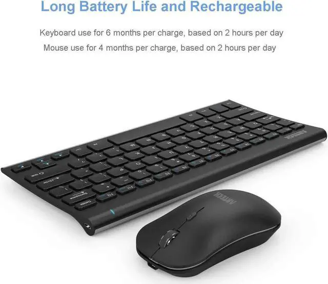 Long Life Rechargeable Battery: Rechargeable lithium battery with an industry-high capacity lasts for 6 months for the keyboard and 4 months for the mouse with single charge (based on 2 hours non-stop use per day).