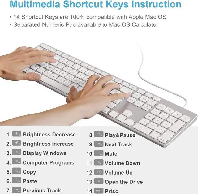 Apple Keyboard: Equipped with 106 keys, including 14 shortcut keys, this keyboard is perfectly optimized for typing on iMac, Mac Mini, or MacBook laptops.