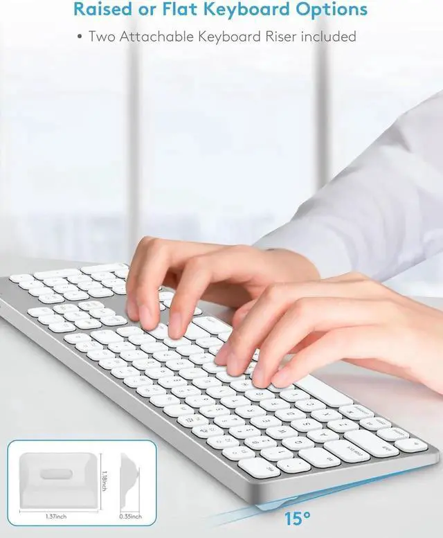 Attachable keyboard Risers inclued. A pair of risers that come out with the keyboard can fixed on the keyboard back based on yout typing posture, designed to enhance the typing experience.