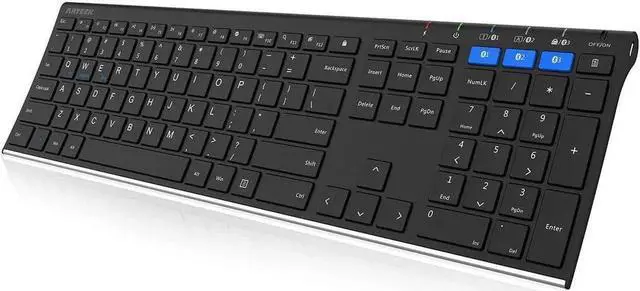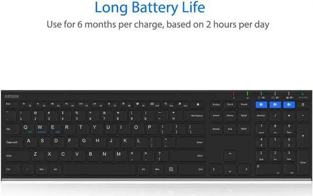 Ergonomic design: Stainless steel material gives heavy duty feeling, low-profile keys, full size keys, arrow keys, number pad, shortcuts offer quiet and comfortable typing.