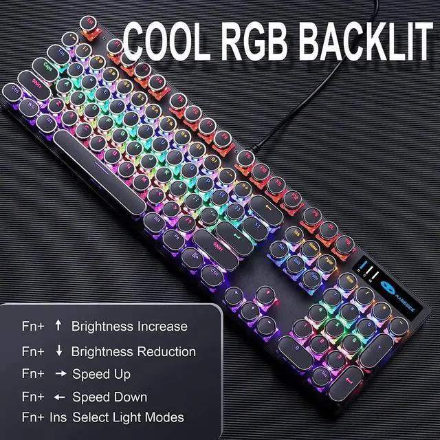 How to Control The Light? - This black mechanical gaming keyboard offer multiple rgb light modes. Press Fn + Ins to choose light mode, Press Fn + / to bright / dim the light, Press Fn + / to change speed