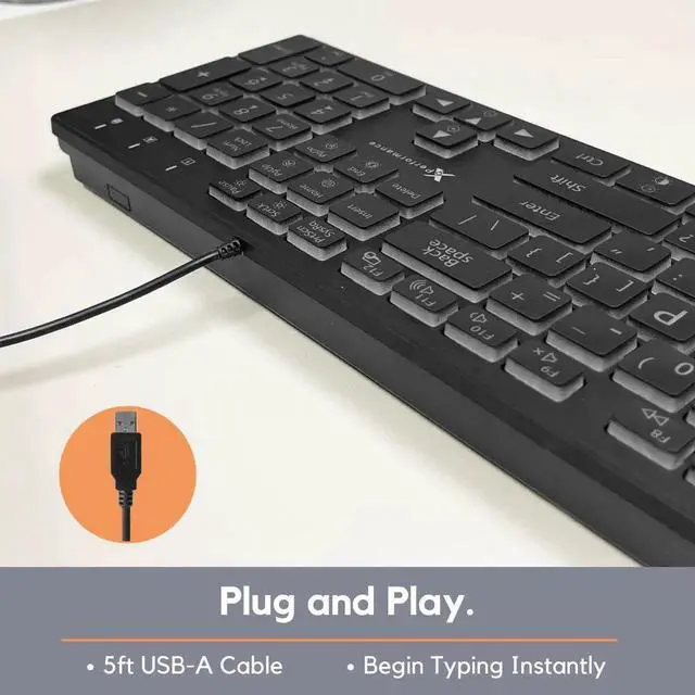 (Just Plug and Play): Begin typing instantly. Simply plug the 5ft USB-A cable of our lighted keyboard into your computer or laptop, and you' re ready to begin. For PC and Chrome.