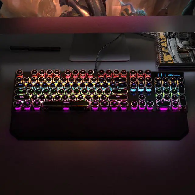 Camiysn Typewriter Style Mechanical Gaming Keyboard, Black Retro Punk Gaming Keyboard with RGB Backlit, 104 Keys Blue Switch Wired Cute Keyboards, Round Keycaps for Windows/Mac/PC