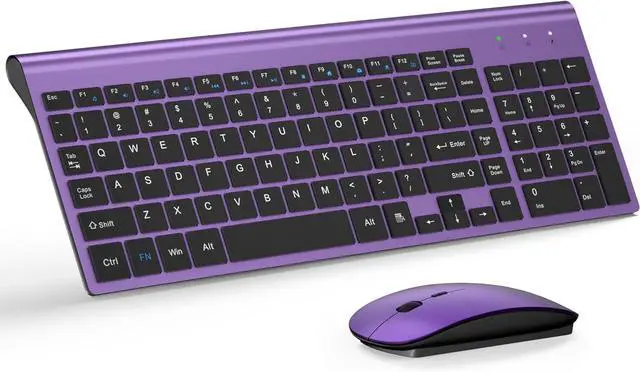 Wireless Keyboard and Mouse Ultra Slim Combo, TopMate 2.4G Silent Compact USB 2400DPI Mouse and Scissor Switch Keyboard Set with Cover, Batteries Included, for PC/Laptop/Windows/Mac - Purple Black