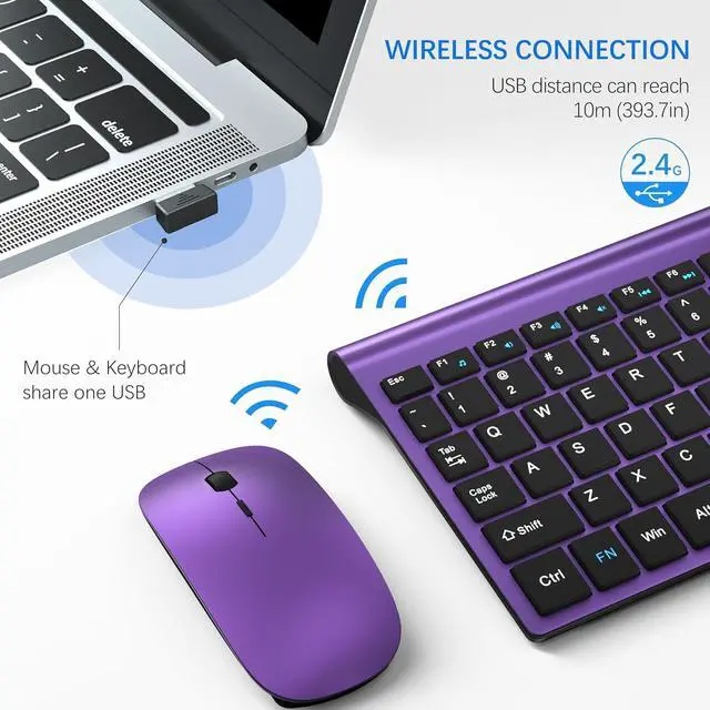 Stable 2.4G Wireless ConnectionPowerful and reliable connection of wireless keyboard mouse is up to 10 m(393.7in). Wireless keyboard with mouse combo share a Nano receiver (stored at the bottom of the mouse) without installing any additional software, plug and play. Keep your desk clean and tidy.