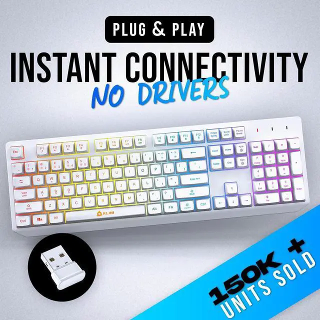 INSTANT CONNECTIVITY. Plug in the USB receiver and you can use the KLIM Chroma wireless keyboard instantly, from up to 30 feet away. There is no need to install any drivers!