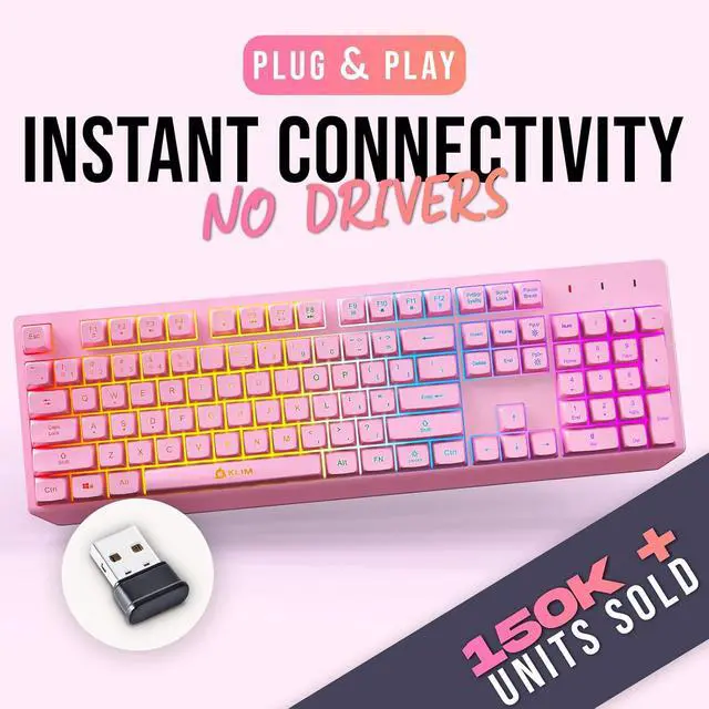 INSTANT CONNECTIVITY. Plug in the USB receiver and you can use the KLIM Chroma wireless keyboard instantly, from up to 30 feet away. There is no need to install any drivers!