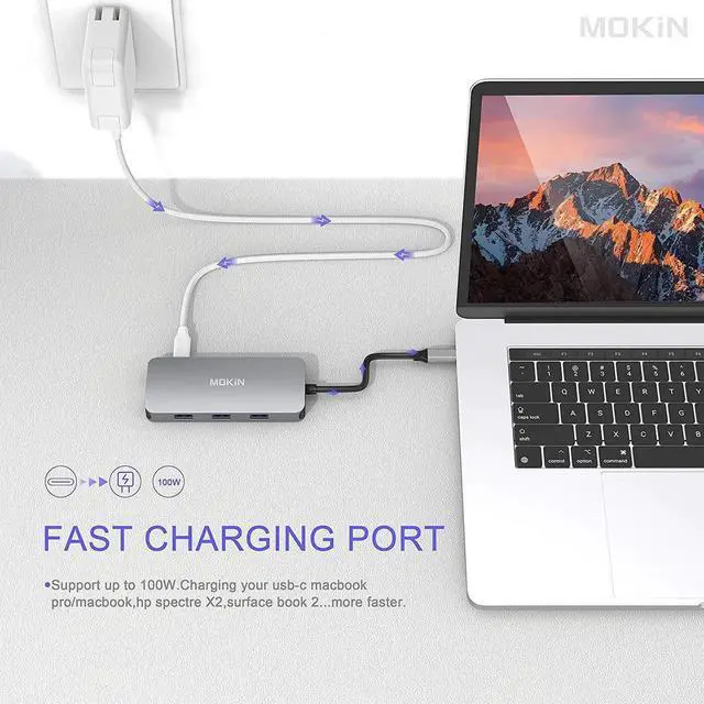 Super Speed 3 USB 3.0 Ports(At Full-Speed): Allow you to connect keyboard, mouse, hard drive, etc to MacBook Pro, Up to 5Gbps data transmission speed, down compatible with USB A 2.0 and below. Because HDD/SDD needs more power, so this adapter only allow connect 1 HDD/SSD and this adapter won' t support Apple USB Super Drive.