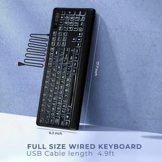 Large Print Keyboard- 4X larger than standard keyboard fonts, clear and easy to find, and can really help those who have trouble seeing keyboards. Perfect for elderly, the visually impaired, schools, special needs departments and libraries, etc