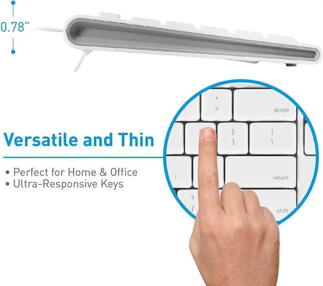 COMFORTABLE LOW PROFILE ULTRA RESPONSIVE KEYS: Full sized keycaps with slight indentations allow you to type comfortably, quietly, and with a responsive touch.
