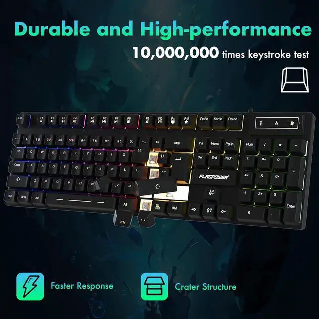 19 Keys Anti-Ghosting: The latest illuminated gaming keyboard with 104 keys, 19 keys non-conflict keys allows you to press or hold multiple keys simultaneously without fear of missing or unexpected key presses. Gaming Keyboard and Mouse are super responsive which could take you into a pretty cool gaming atmosphere quickly.