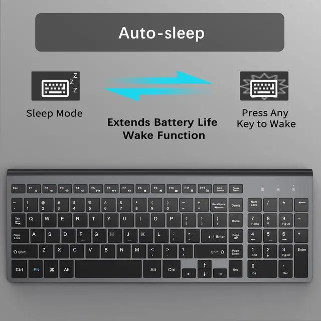 Auto-Sleep Mode:The bluetooth keyboard uses lithium batteries (not included in the package). It will automatically enter the power-saving mode if there is no operation for 30 mintutes. Click any button at will, the keyboard could be activated normally.